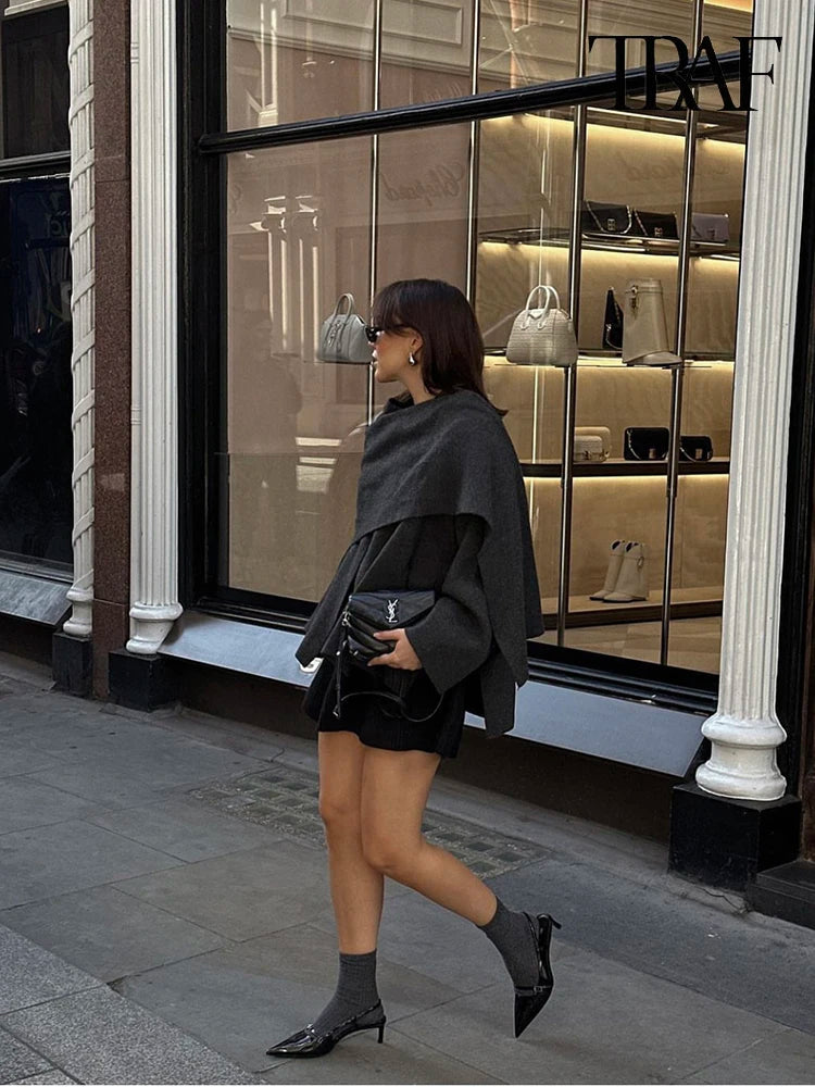 Knit Scarf Collar Short Coat – Women's Winter Fashion